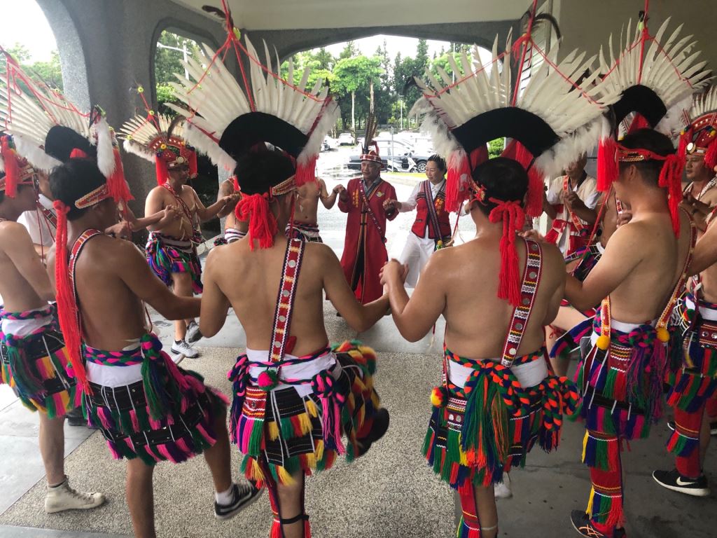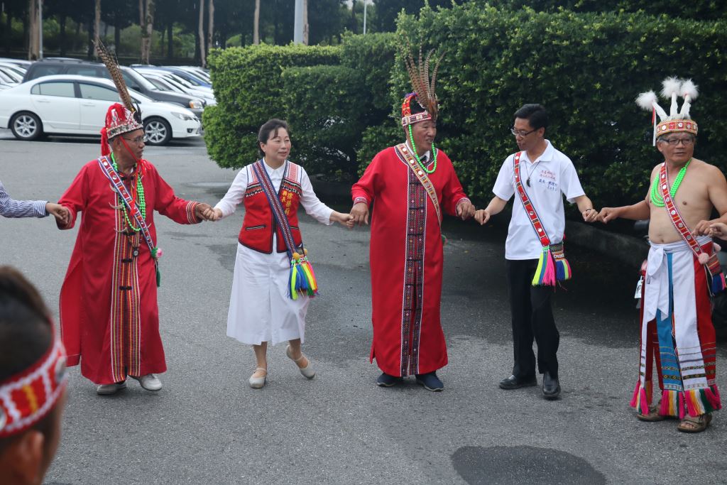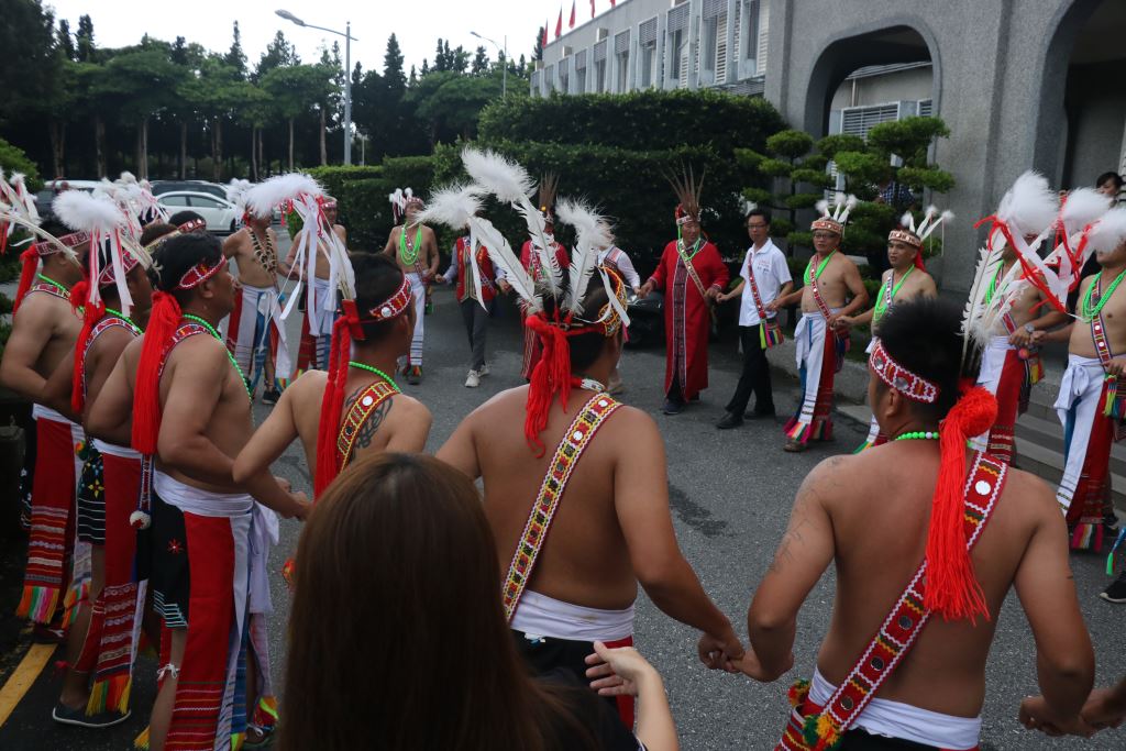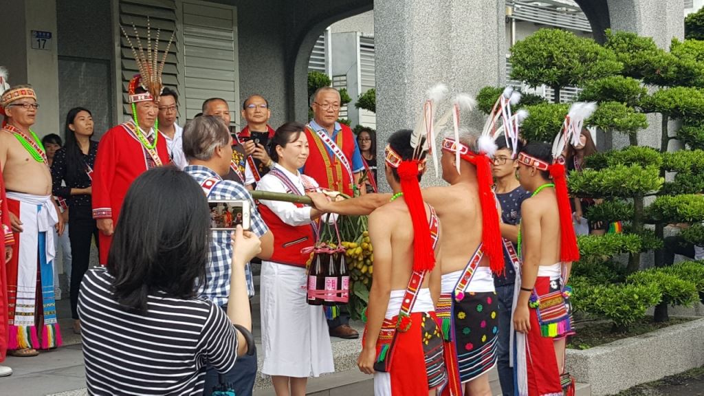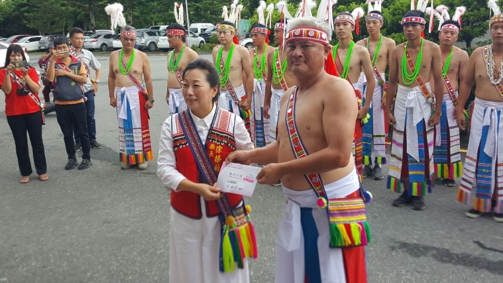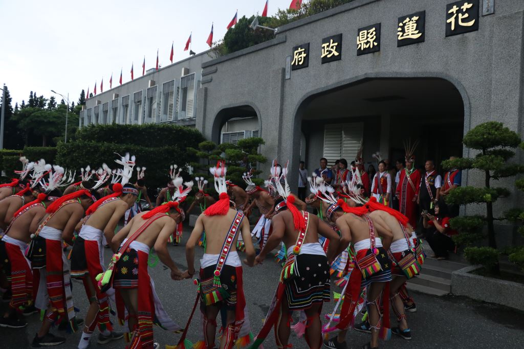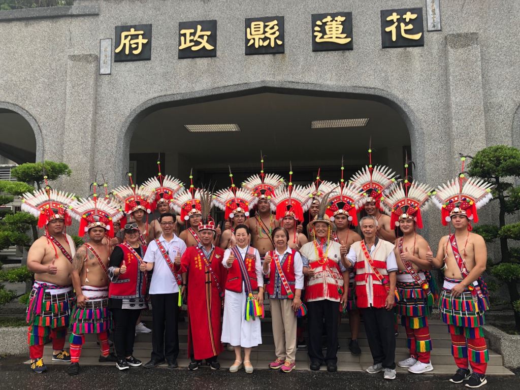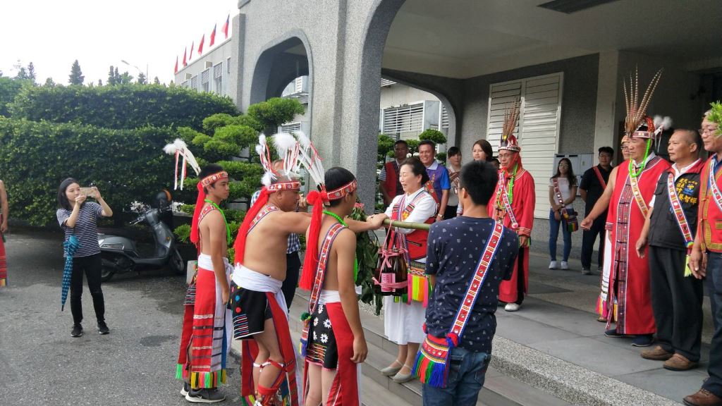 光復鄉馬太鞍及壽豐鄉光榮部落年齡階層9日上午風雨無阻,先後到花蓮縣政府報信息(Patakus),族人感謝上天賜福,躲過強烈颱風肆虐,縣長徐榛蔚親自接下小米、檳榔、祭酒等信物,也熱情邀請大家參加光復鄉及壽豐鄉部落豐年祭(Ilisin)。