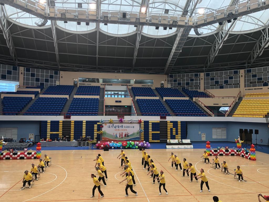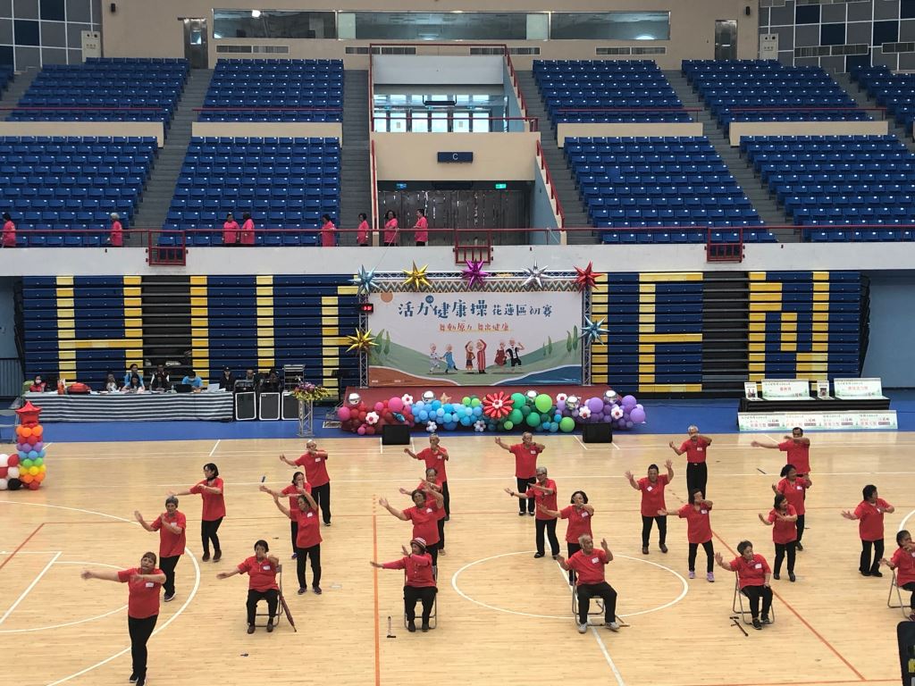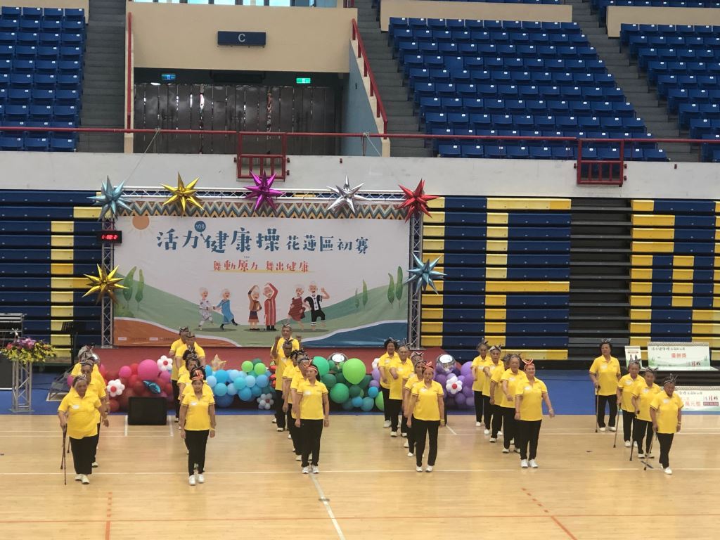 一年一度活力健康操競賽花蓮區初賽十二日,在縣立體育場熱鬧登場,來自縣內13鄉鎮市65個文化健康站參賽隊伍,展開為期2天競賽,第1天34隊參賽,人數975人,加上家屬加油團,超過千人共舞活力健康,氣氛嗨翻天。