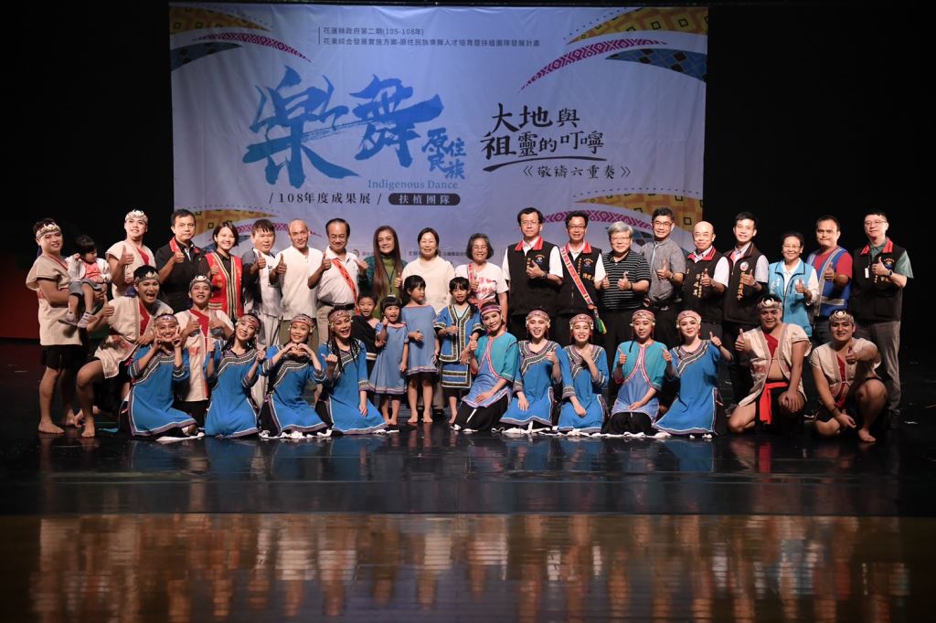 花蓮縣政府推動原住民樂舞人才培育計畫,昨晚8月6日在本縣文化局演藝廳舉辦成果發表,推出大地與祖靈地叮嚀《敬禱六重奏》歌舞劇。計畫主持人葉芬菊老師表示演出內容呈現本縣原住民六大族群經典歌謠與舞蹈,並重新編創結合影音聲光的輪換,充滿新意與美感。昨晚吸引廣大鄉親及貴賓到場聆賞,精湛演出讓全場觀眾如癡如醉,掌聲久久不歇。