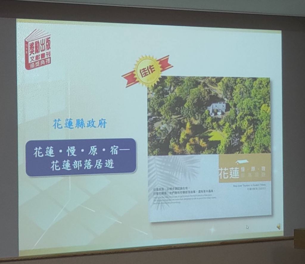 花蓮縣政府為推廣花蓮縣部落旅遊,出版《花蓮.慢.原.宿─花蓮部落居遊》書籍,書中收錄花蓮縣內十三家原住民經營之民宿,涵蓋農園、海濱、原住民文化體驗、料理、異國風等主題特色,搭配周邊工藝工坊、風味餐、體驗旅遊等據點,精彩豐富的內容於國史館臺灣文獻館舉辦的112年度獎勵出版文獻書刊活動,在上百件投稿中脫穎而出,榮獲推廣性文獻書刊「政府機關」類別佳作,昨(27)日由原民處部落經濟科鄧凱倫科長代理授獎,感謝國史館臺灣文獻館對於花蓮縣政府的肯定,也期望讀者透過文化旅遊的廣博視角,帶領遊客「接地氣」體會部落內涵,並帶動部落產業,充分認識南島的故鄉-花蓮。