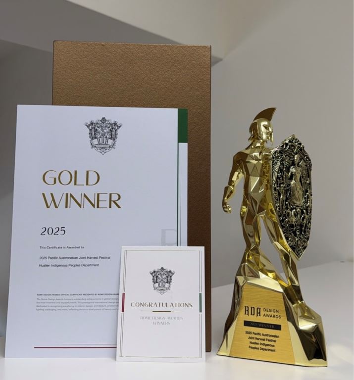 花蓮縣政府主辦,「太平洋南島聯合豐年節」系列活動,以創新的文化策展手法,與深具南島精神的設計語彙,將台灣原住民族文化,持續在國際舞台嶄露頭角。近日,再傳佳績,本屆2025年《太平洋南島聯合豐年節〈迴到花蓮・南島共響》活動,榮獲2025年羅馬設計獎(Rome Design Awards)室內設計—展覽及活動類金獎,並獲得交通部觀光署「國際級活動」認證,展現本活動的國際吸引力、活動品質與文化內容上的成熟度。(圖:花蓮縣政府提供)