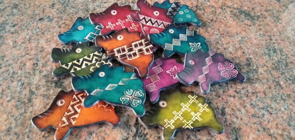 「百合工作室」位於花蓮縣豐濱鄉,工作室主人「潘秀嫈」本著對皮雕工藝濃厚的興趣,一頭栽入鑽研與創作長達20多年光陰。工作室皮雕作品包含鑰匙圈、手環、長短夾、零錢包以及大小包包等,作品風格多元。潘秀嫈老師將兒子所設計之噶瑪蘭族原住民族圖騰與意象,融入皮件飾品上,成為獨一無二的美麗圖紋,加以延伸、變化,讓皮雕作品更活潑有創意。