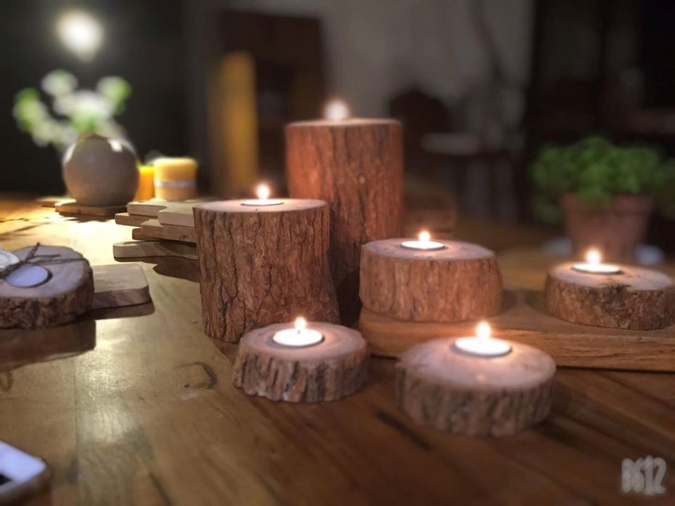 而現在,香兒老師從陶藝轉變成與原木為伍,愛上了木材的香氣與天然紋路,從進料裁切到製作成商品都不假他人之手。作品樸實天然,從氣勢非凡的大型原木家具到浪漫典雅的小燭台都有製作,價格親民,質感俱佳。