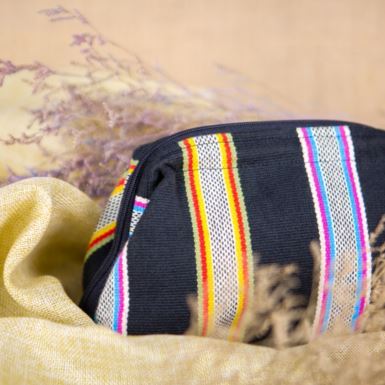 編織工藝家岳鴻阿嬤希望延續工坊文化,因此工坊名字取自她最疼愛的兩位孫子,期待能傳承僅有的編織工藝,不僅延續,更希望能與時俱進的跟著市場的喜好做出創新。 老奶奶的白色苧麻傳統布料,襯上彩虹橋和菱形紋的紋樣圖案,加上編織難度最高的挑織、一針一線,只為了呈現太魯閣族獨有的傳統特色。 獨特的布料與編織工藝,牽起了岳鴻一家三代人,更成就了工坊裡每個創意手織溫感小品,也牽起了每個人對於織品的獨特感情。