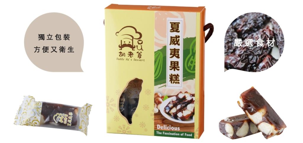 胡老爹擁有了40年以上的烘焙經驗,在2014為了將更便宜、更優質的糕點呈現給大家,於是成立了胡老爹菓子工房。「老胡賣點心」,減少華麗的包裝、減少宣傳的成本,把這些預算全部花在糕點的材料上,讓每一個人都能吃到【幸福的感覺】!